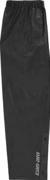 Крупногабаритные брюки сделаны из 100% водонепроницаемого ПВХ. Швы сварены с помощью электроники. Удобные клапаны вентиляции. Боковые разрезы в нижней части штанин. На брюках матового черного цвета логотипы Can-Am расположены в
